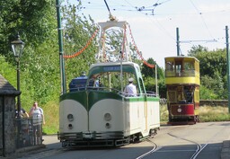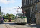 A scene at CrichShowing Chesterfiled Corporation tram #7 and the Blackpool boat tram.